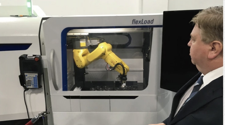 例如,United Grinding的Flexload是一個額外附加的自動門,機器人可以通過該門進入研磨機的一端。此門仍然可供操作員使用,但是出於安全和溫度控制的目的,機器人會有專屬的門。