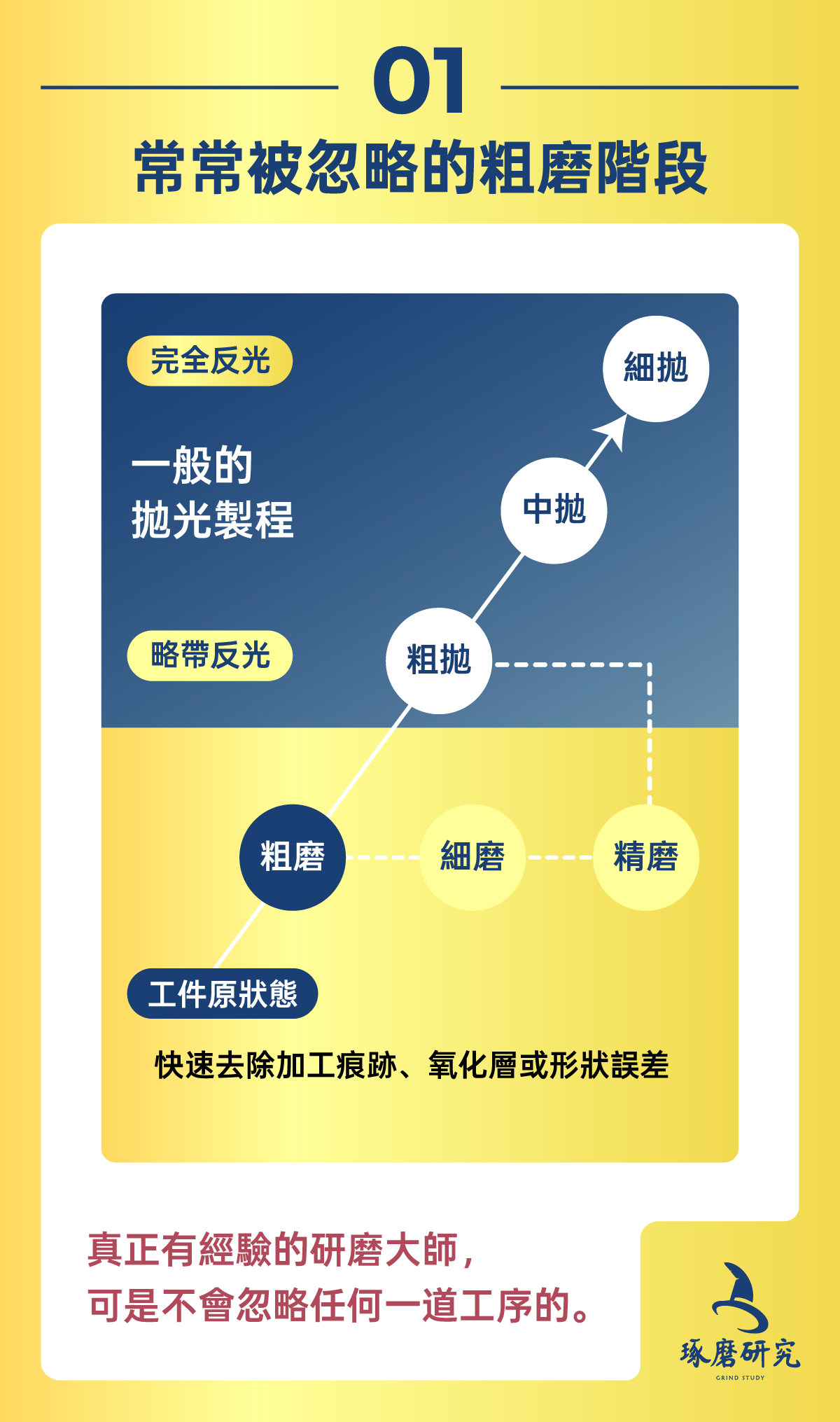 有些人認為粗磨可以隨便處理,只要後續多花點功夫拋光就能補救。