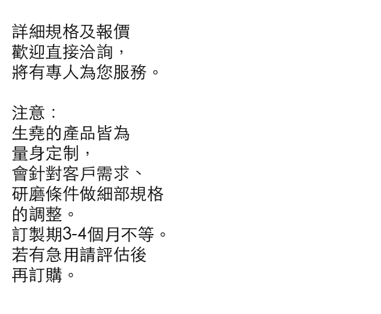 生堯的產品皆為量身定制,會針對客戶需求、研磨條件做細部規格的調整。