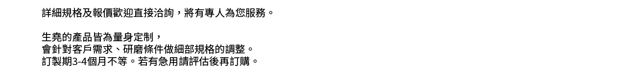同時也能承受大進刀量的擠壓和排除研磨熱。 而且還通過了世界知名刀剪大廠的認可使用。