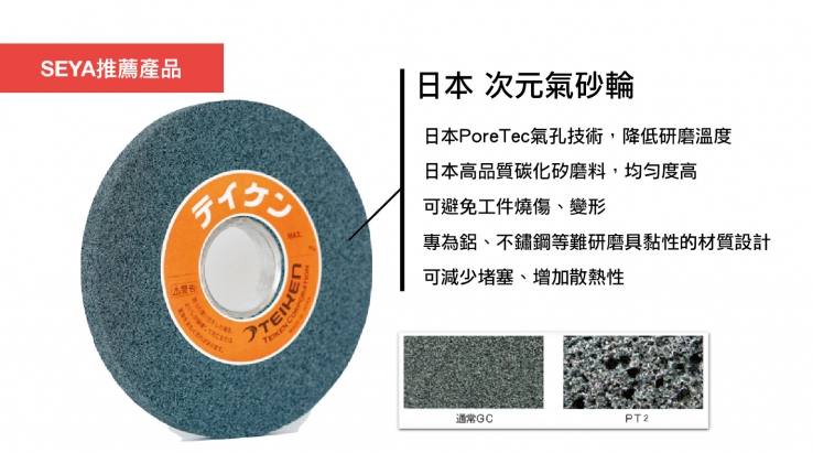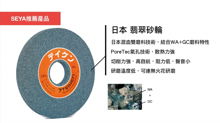 SEYA根據鋁工件的以上特點挑選出兩款砂輪,各有其獨特技術,適合鋁研磨作業